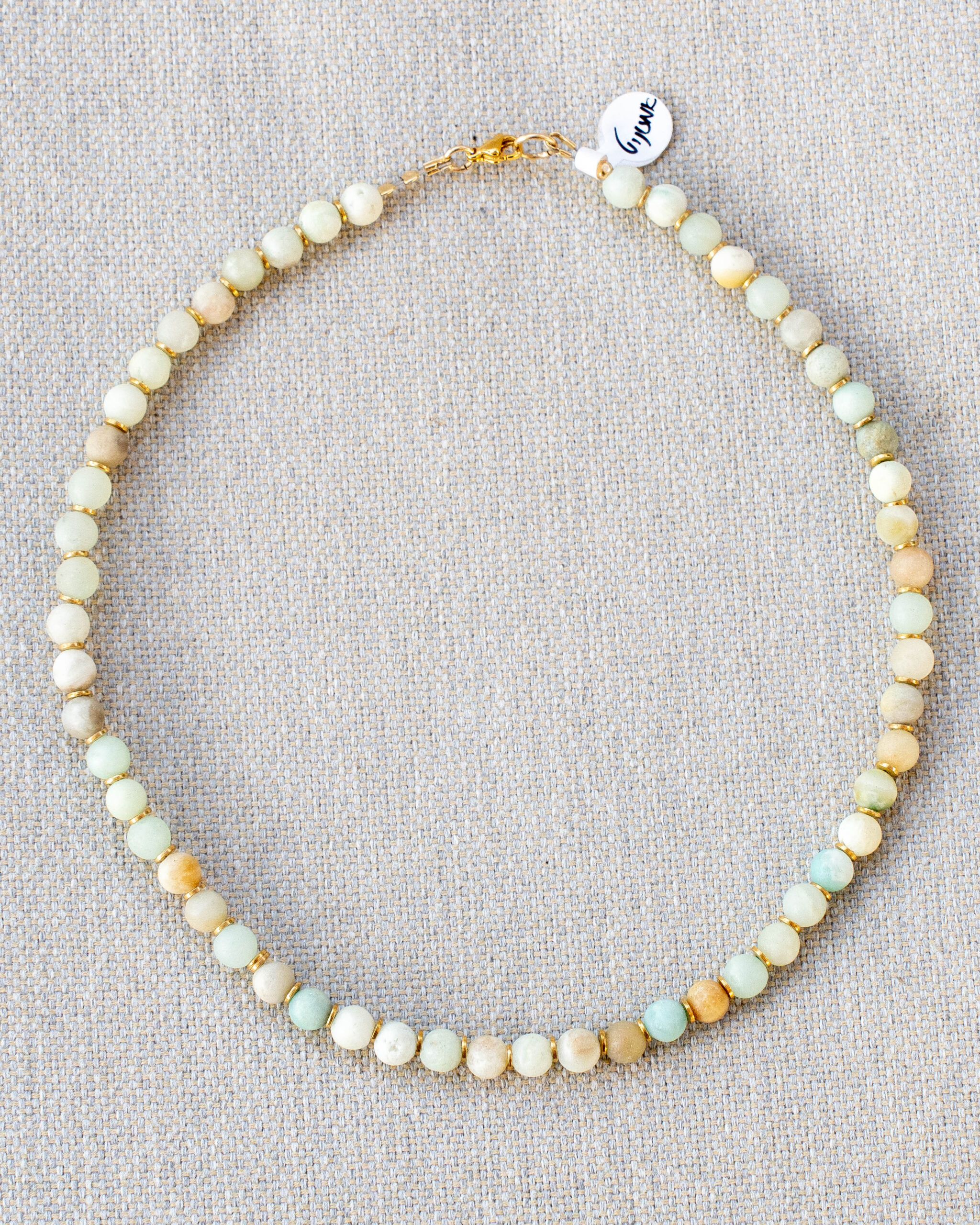 Description: A handmade necklace made of natural amazonite stones in soft blue-green tones. The combination of soothing tones creates a delicate, magical and harmonious look – a piece of jewelry that transmits calm, balance and positive energy. Each piece of jewelry is handmade, with care for high-quality materials and precise selection of each stone. The combination of gold-filled and stainless steel ensures high durability, quality and long-lasting shine. Energetic meaning: Amazonite – helps calm emotions, internal balance and strengthen self-confidence; symbolizes peace, positive communication and courage.
